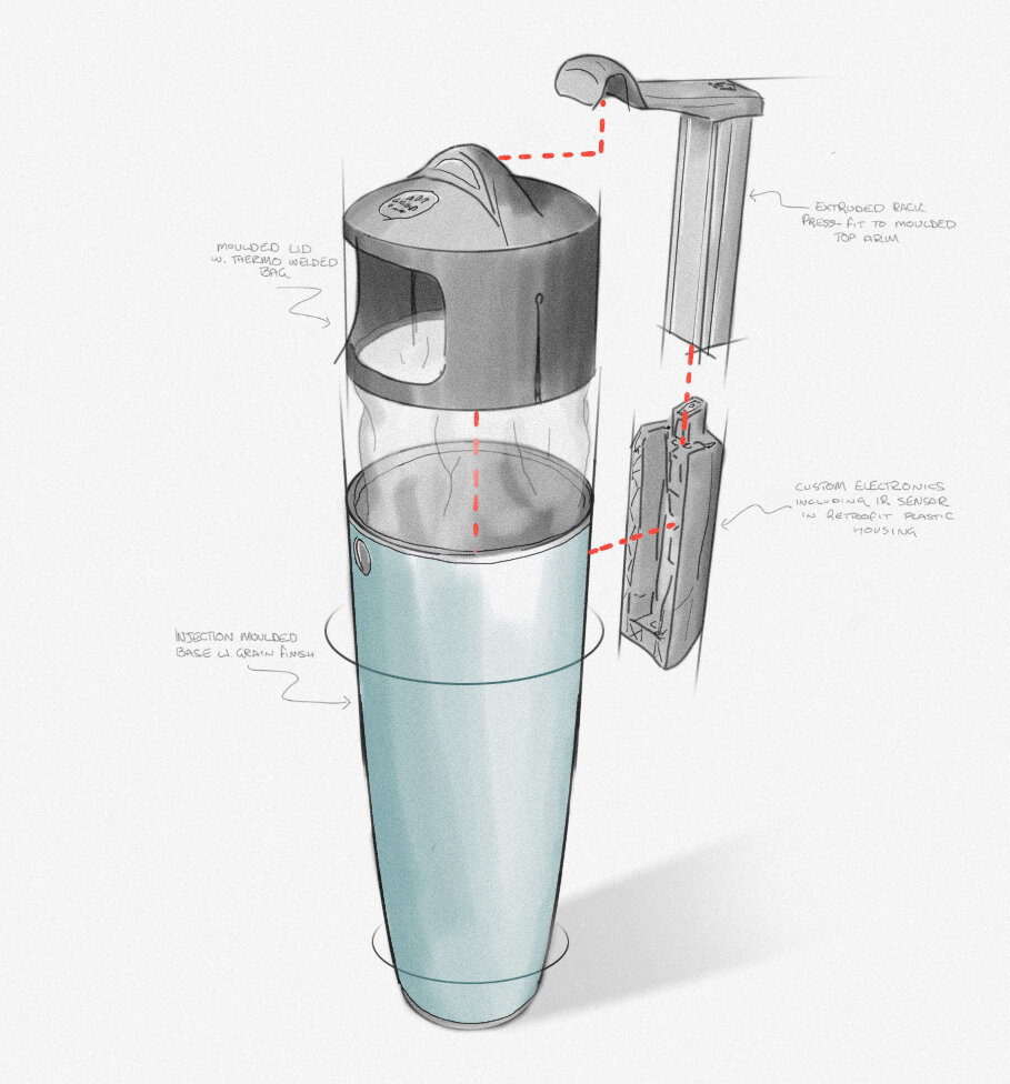 Through development we produced numerous prototypes to test ideas and steer decisions. This was most notable during the design of the retrofit sensor and foot operated systems. We used our workshop to modify production bins with inhouse 3D printed components as well as externally sourced components.