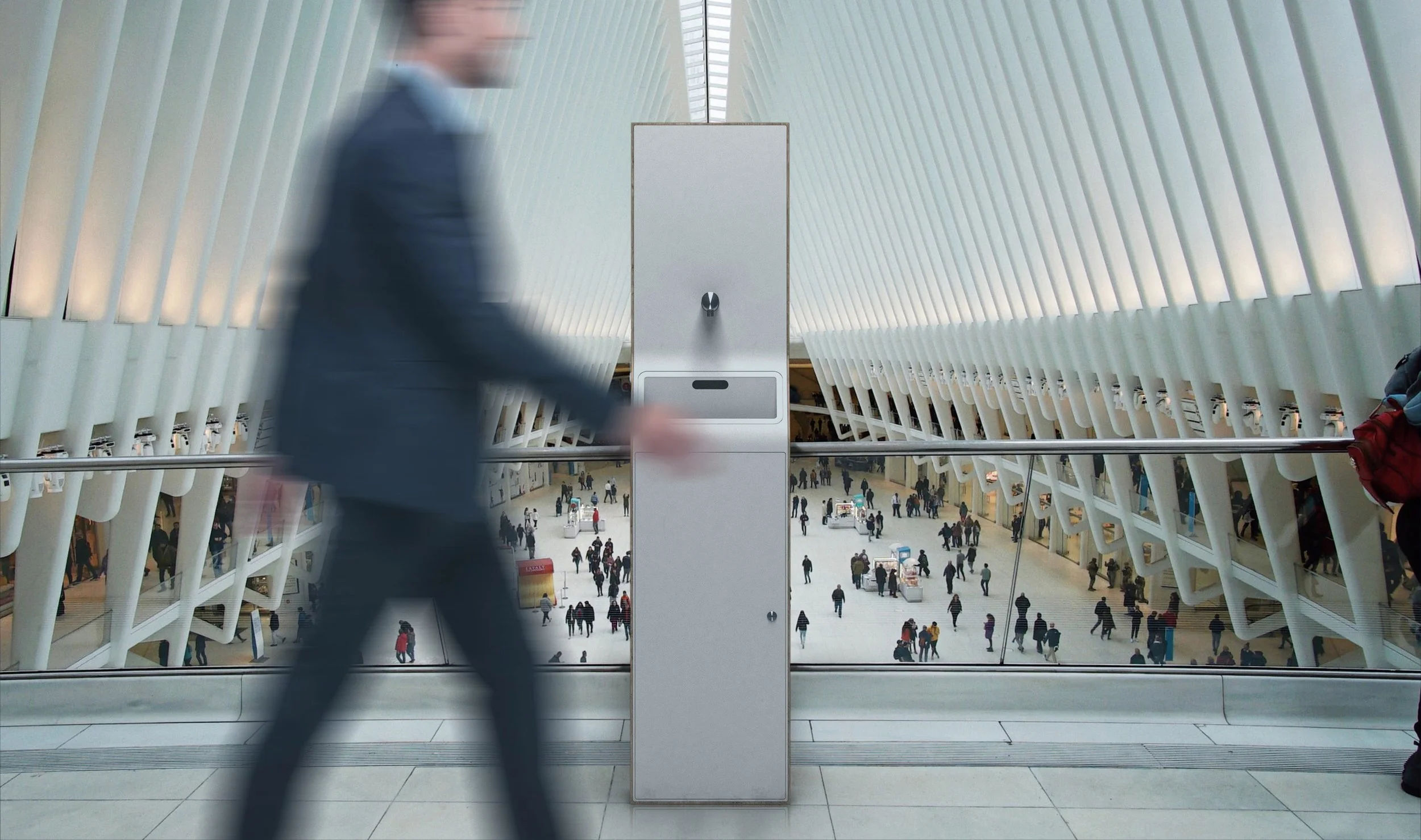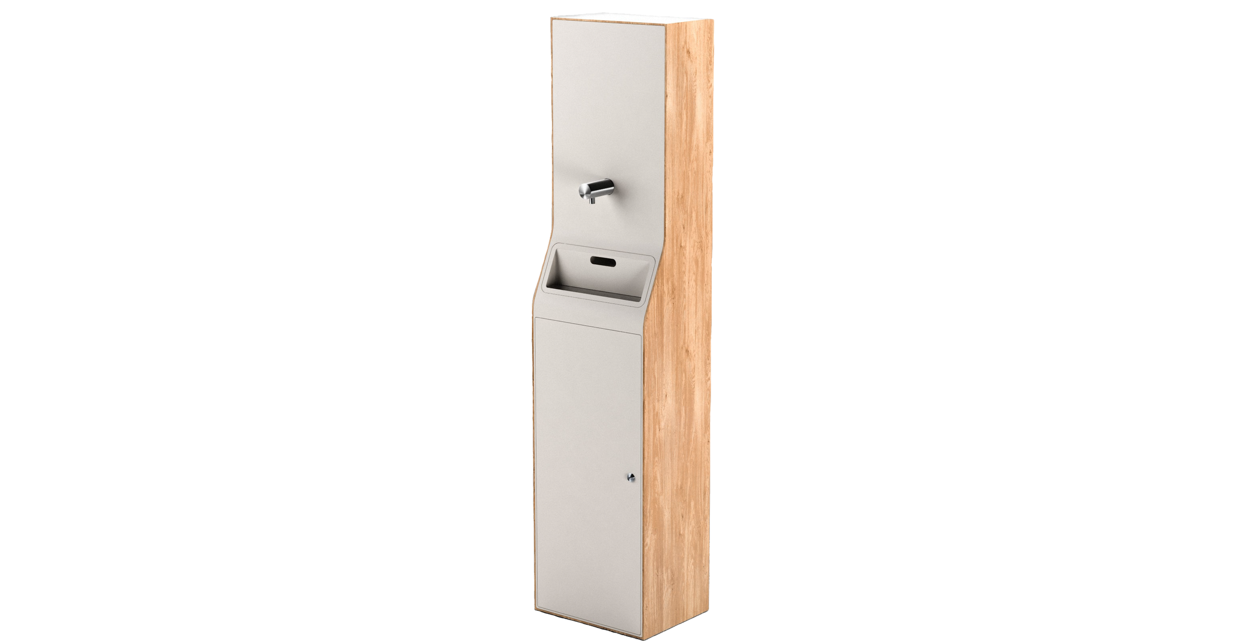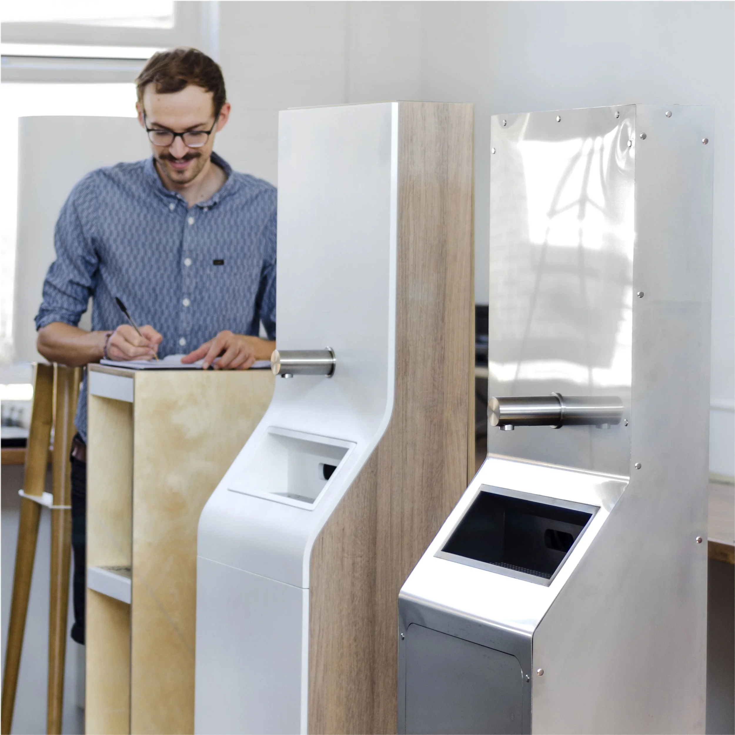 A suite of elegant hand sanitising stations for contemporary office spaces.