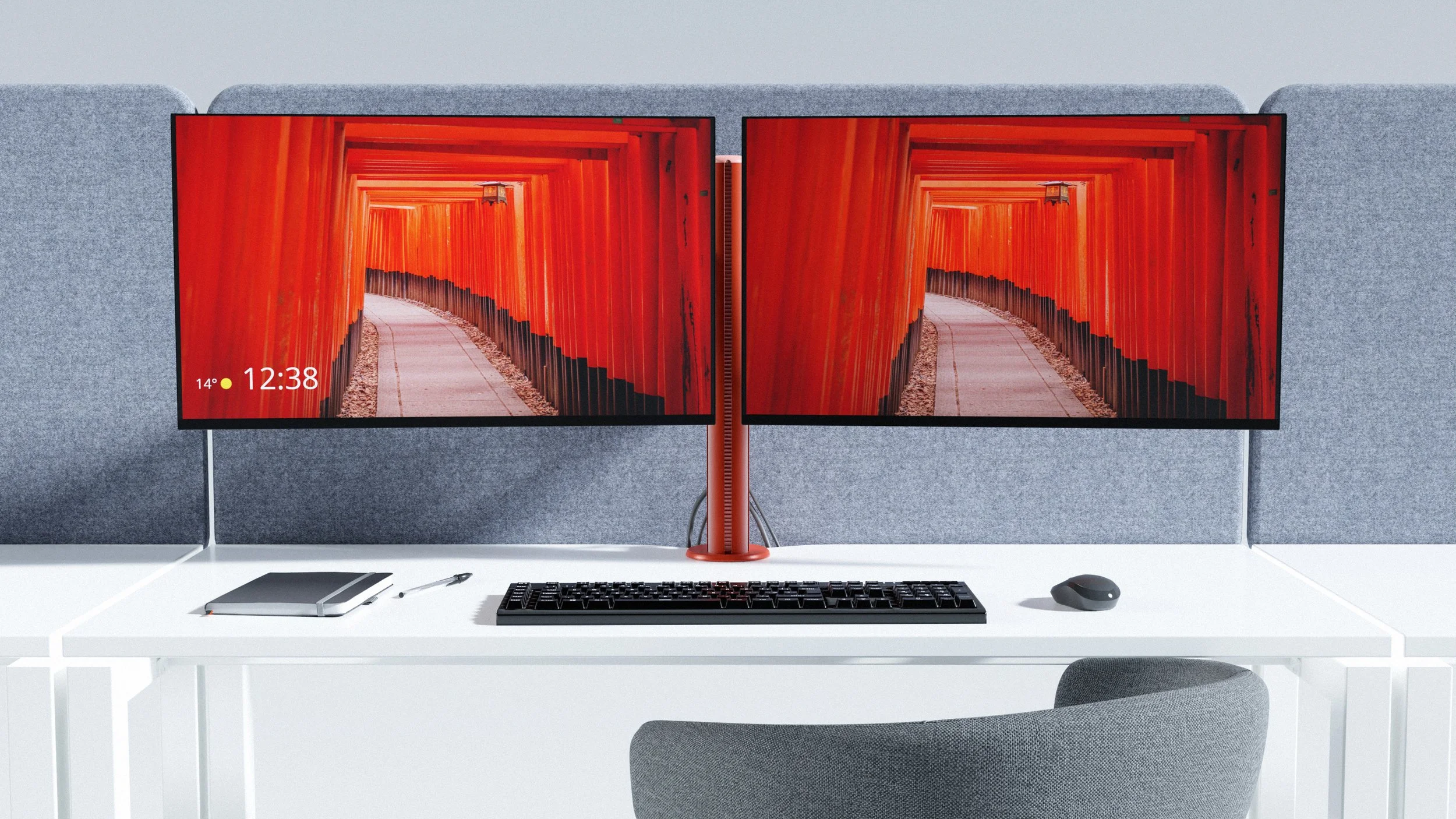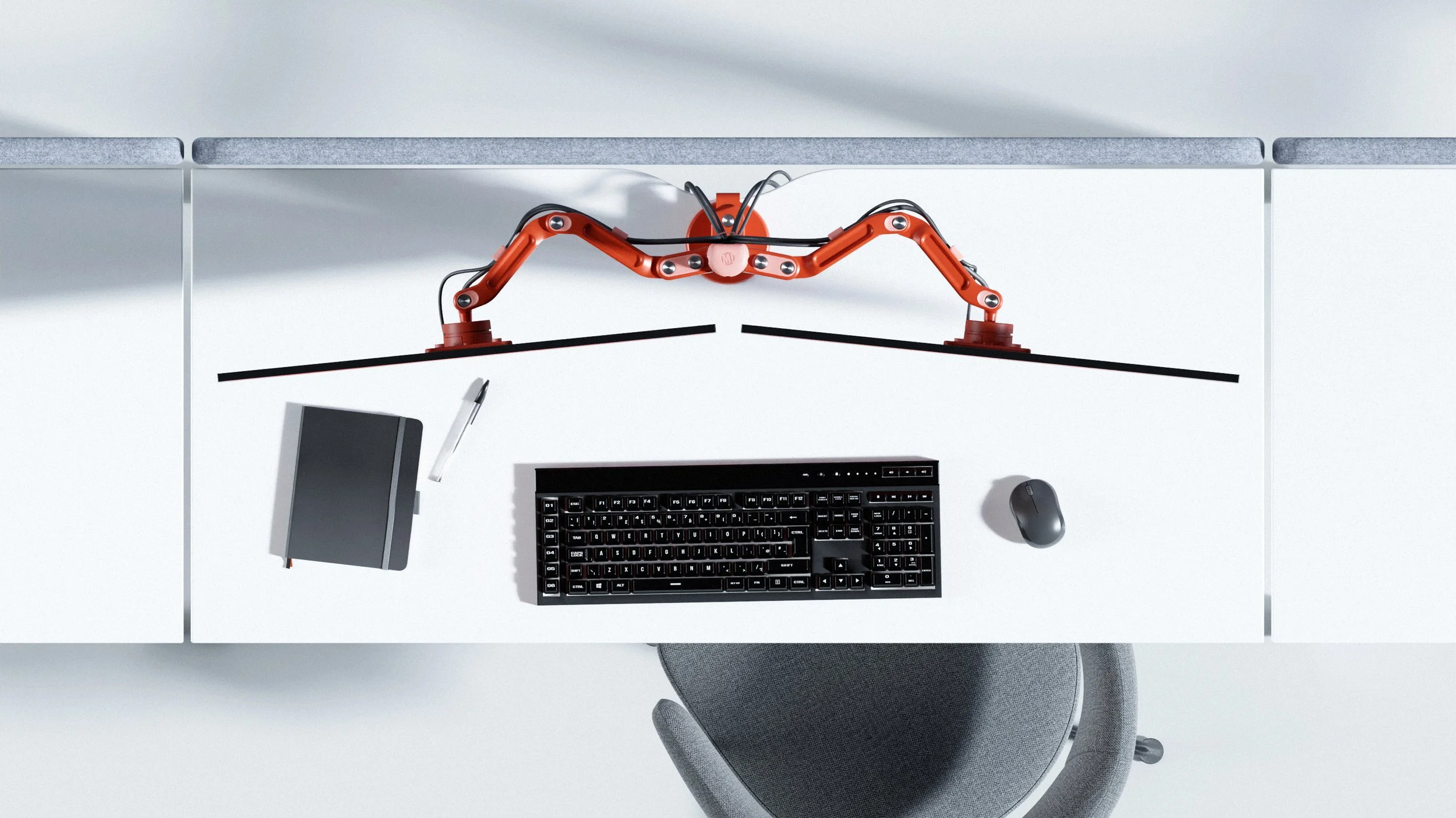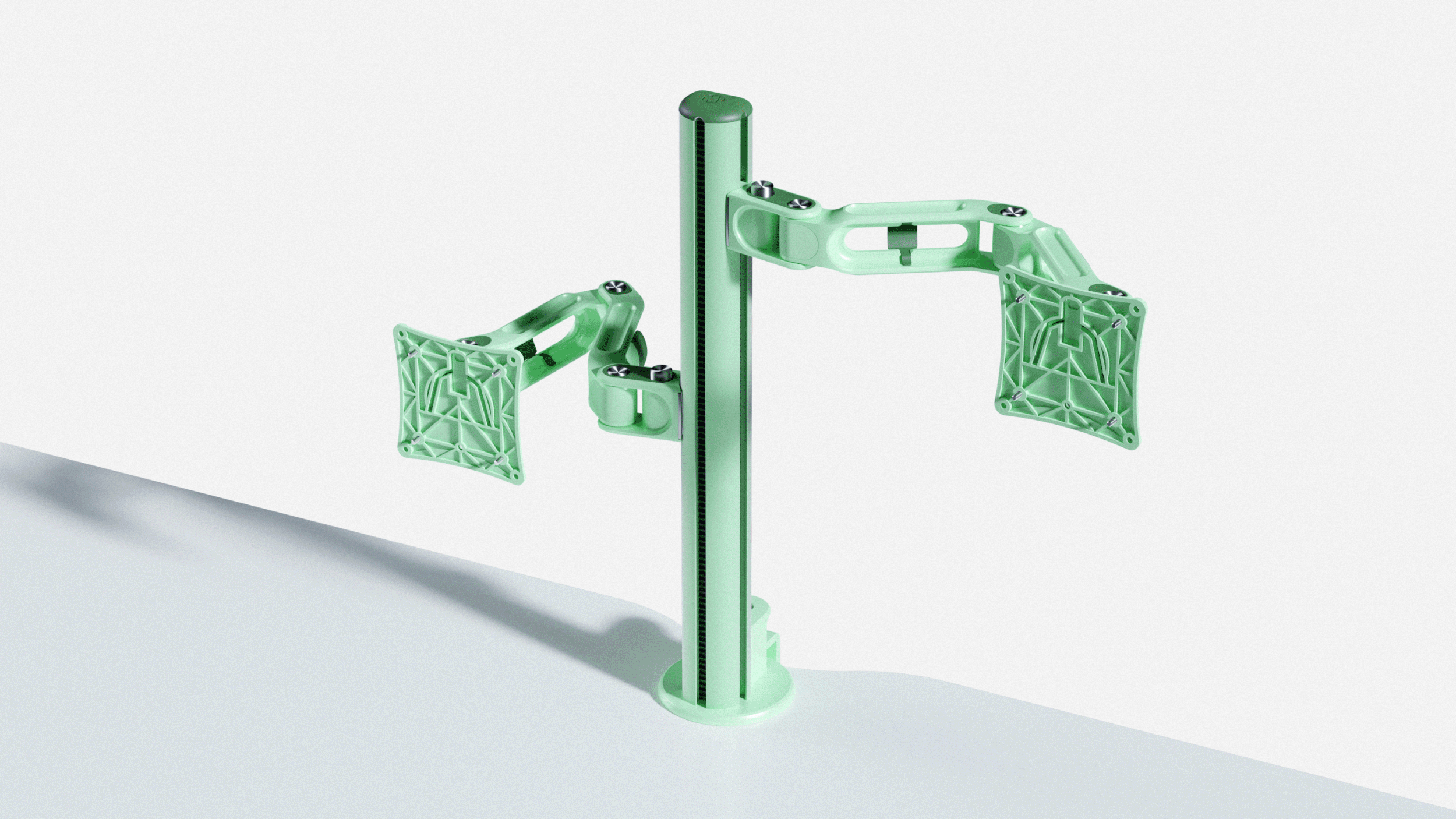 A lot of effort was put into ensuring the arms felt light and took up minimal visual space, whilst maintaining the strength required to support a monitor at full stretch. The slot cutout was key to achieving this, a motif that is then repeated throughout the product to tie individual elements together.